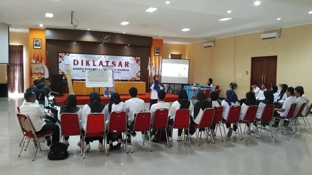 Slawi — Pendidikan dan Latihan Dasar (Diklatsar) Korps Sukarela (KSR) Unit Markas PMI Kabupaten Tegal kembali berlanjut pada pertemuan kedua, Minggu 16 November 2025, bertempat di Aula Gedung PMI Kabupaten Tegal. Sebanyak 34 Calon Anggota (CATA) KSR mengikuti rangkaian materi yang difokuskan pada penguatan kemampuan dasar relawan, mulai dari komunikasi, kerja sama tim, hingga respon […]